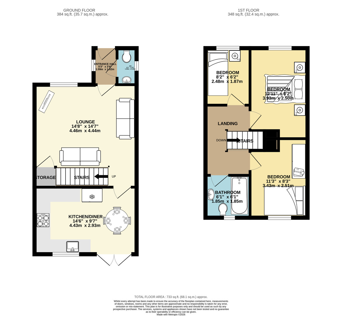 LANDING 6' 1" x 9' 7" (1.86m x 2.93m) Providing access to the bedrooms/bathroom, loft access point with drop down ladder and the loft is partially boarded for storage.