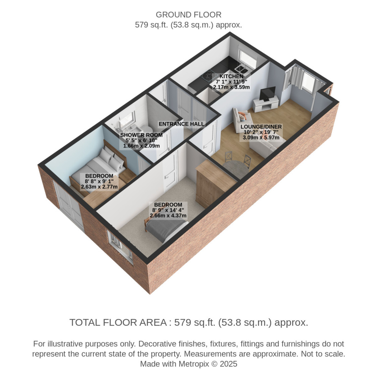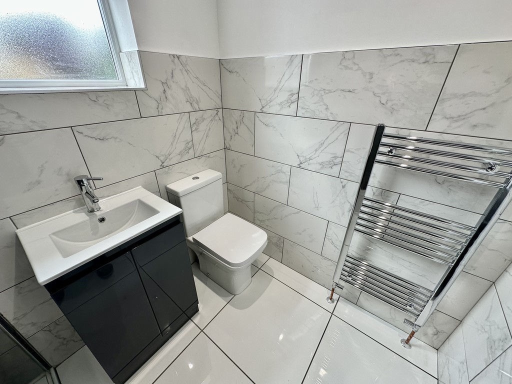 SHOWER ROOM 5' 5" x 6' 10" (1.66m x 2.09m) Immaculately presented shower room with new modern fixtures comprising of a low flush WC, wash hand basin within a vanity unit, walk-in shower with glass divide, dual chrome shower head, spotlights, extractor fan, partially tiled walls, heated towel radiator, tiled flooring and side facing double glazed frosted window.