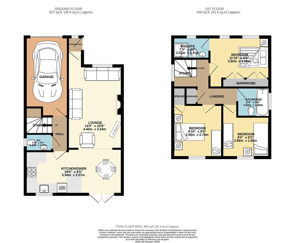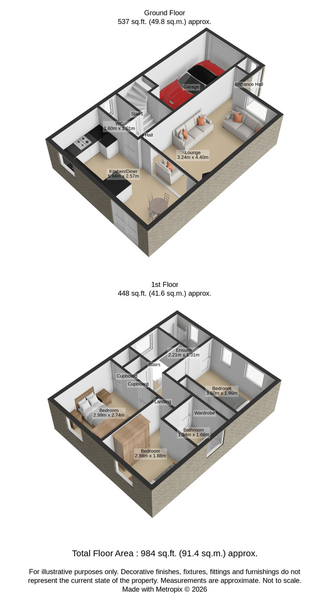 DRIVEWAY & INTEGRAL GARAGE Off street parking is available on the front for two cars and front facing up and over door leads to the single integral garage.