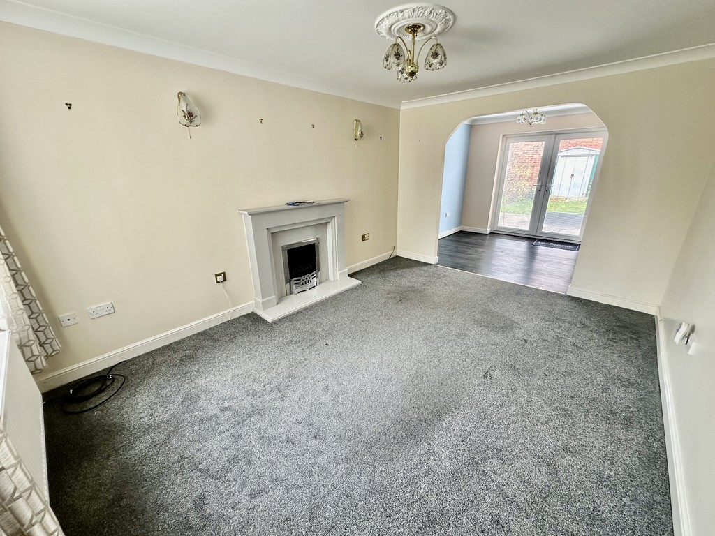 LOUNGE 10' 7" x 14' 5" (3.24m x 4.40m) Spacious reception room with open access to the dining area in the kitchen, front facing double glazed window, radiator, coving, coal effect gas fire and a decorative surround.