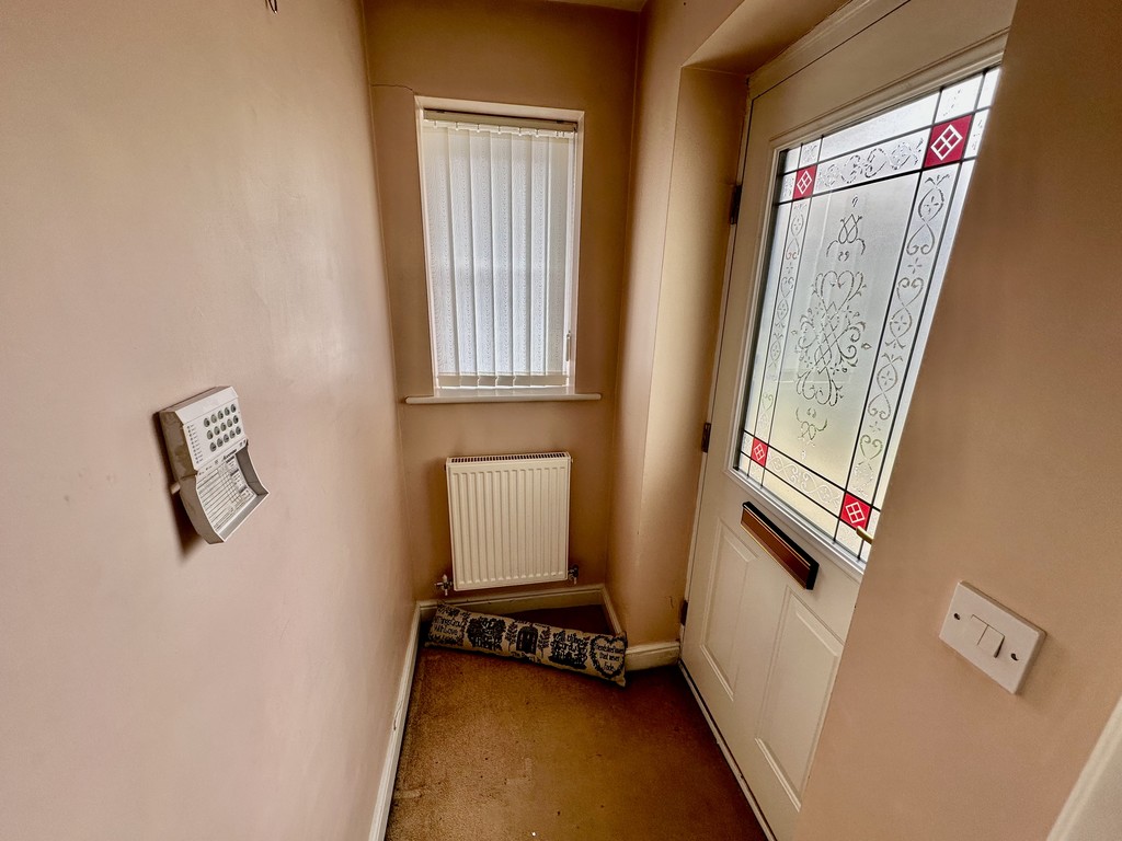 ENTRANCE HALL 2' 9" x 2' 10" (0.86m x 0.87m) The property is accessed via the side facing double glazed door to the hallway, front facing double glazed window, radiator, alarm system and door to the lounge.
