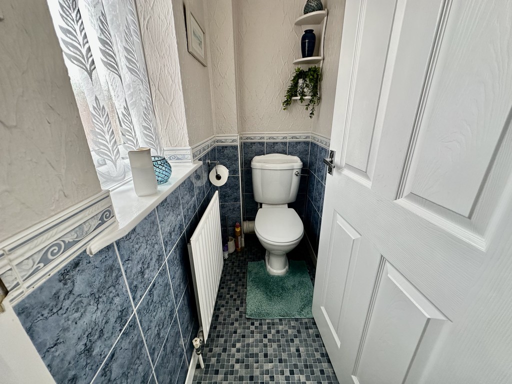 WC 2' 8" x 5' 5" (0.82m x 1.67m) Benefiting from a low flush WC, radiator, half tiled walls and side facing double glazed frosted window.
