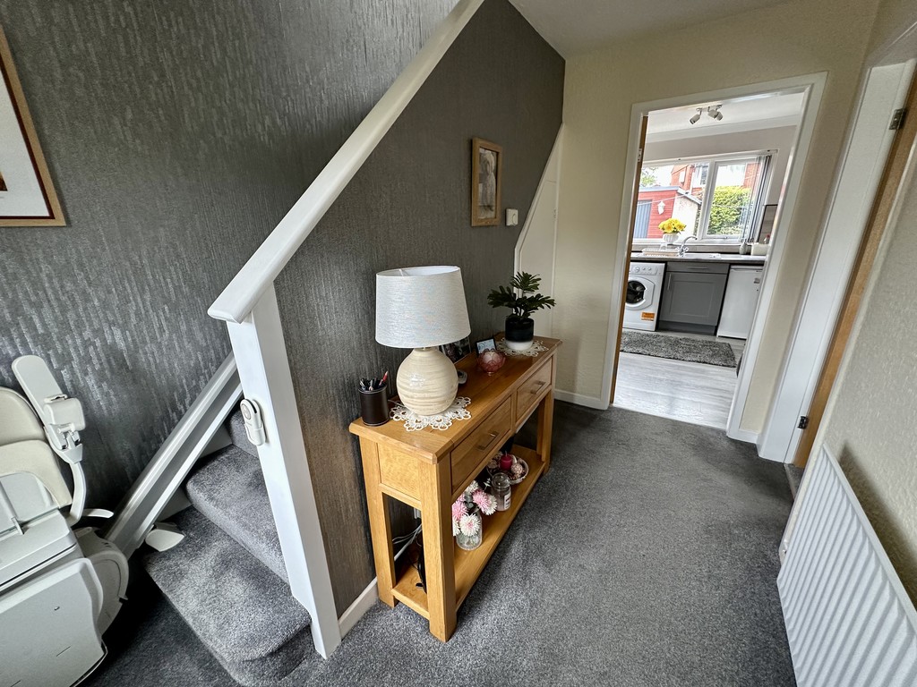 ENTRANCE HALL 7' 6" x 10' 3" (2.30m x 3.14m) This delightful home is accessed via the front facing double glazed frosted door to the entrance hallway, front facing double glazed frosted window, radiator, storage cupboard beneath the stairs, door to the lounge/kitchen and stairs to the first floor.