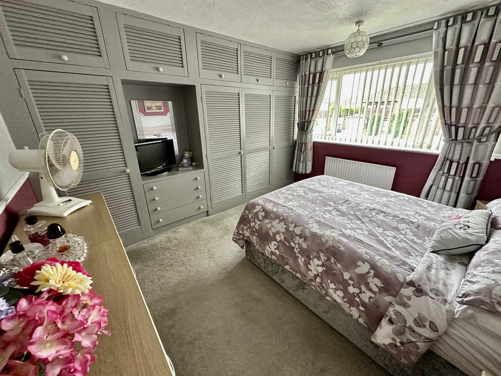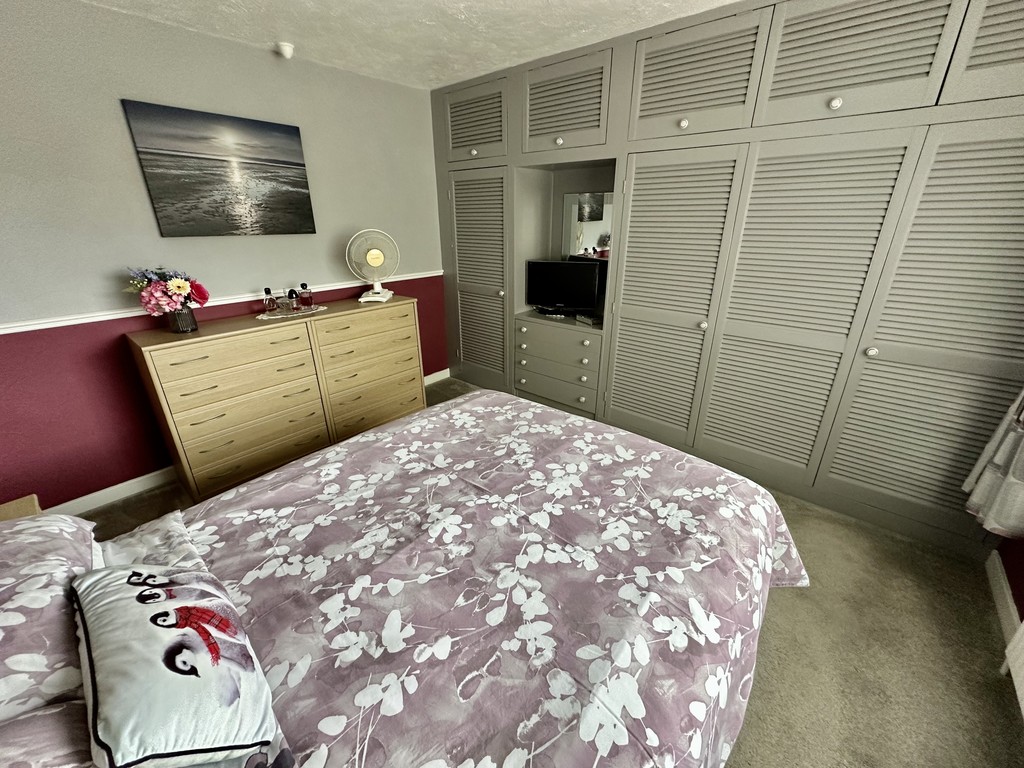 BEDROOM 11' 2" x 11' 6" (3.42m x 3.53m) Large double bedroom with fitted wardrobes, front facing double glazed window, radiator and dado rail.