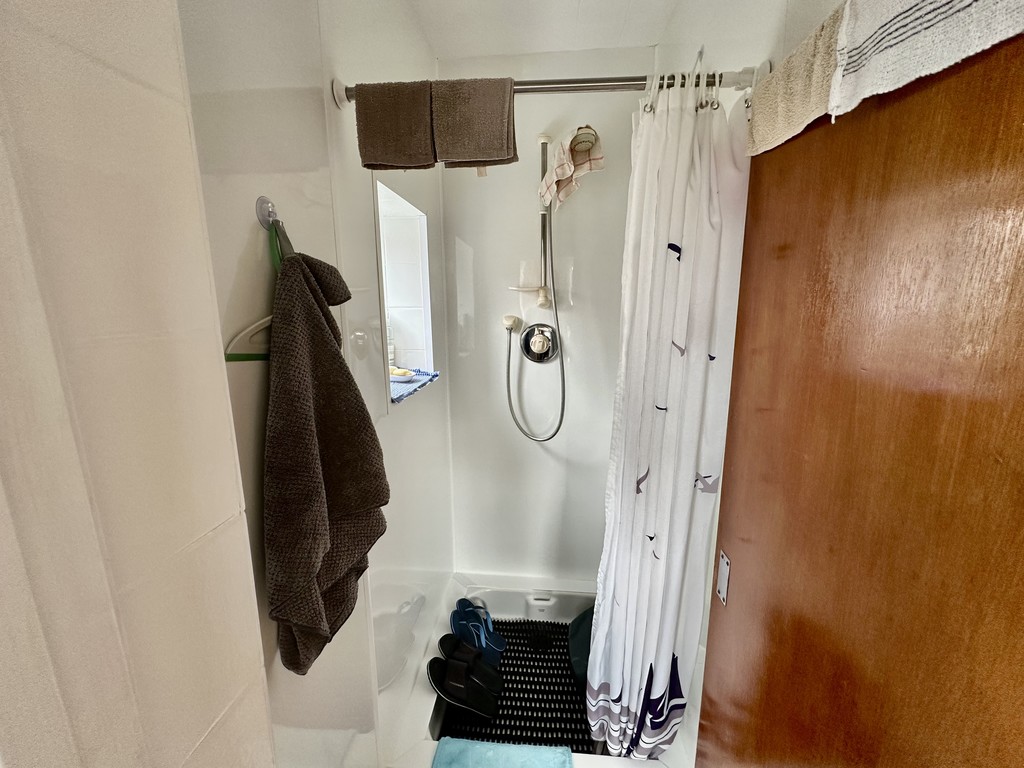 SHOWER SPACE The area beneath the stairs has been utilised for a shower area and benefits from a shower with curtain rail, tiled flooring and side facing double glazed frosted window.