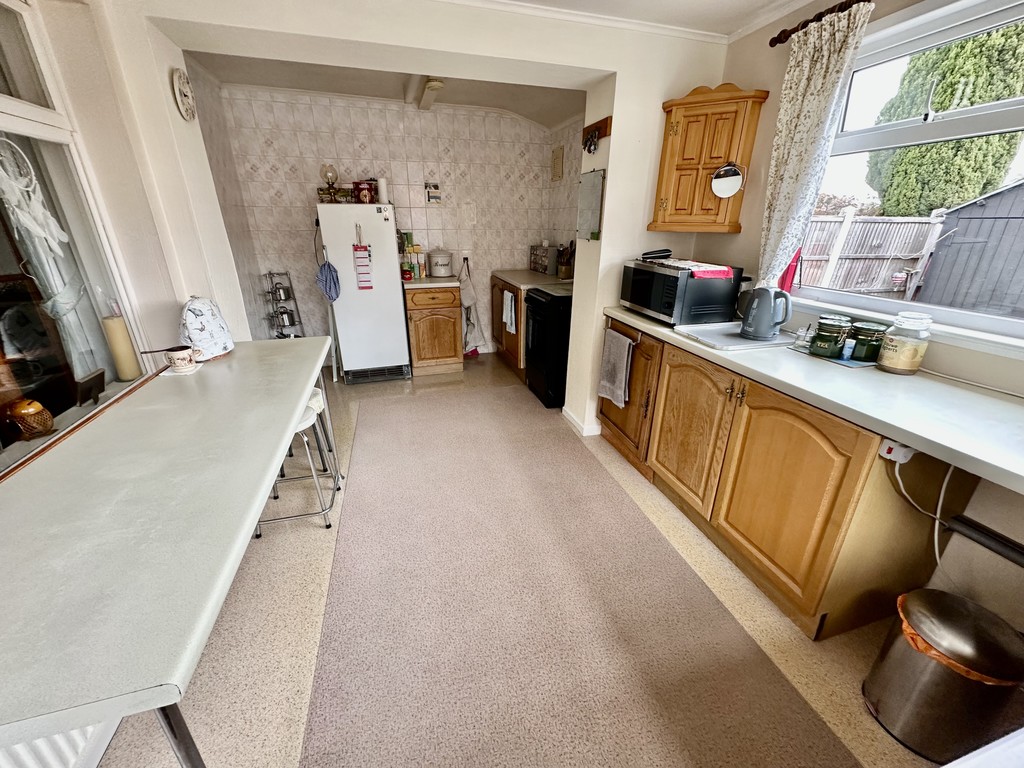KITCHEN/BREAKFAST ROOM 16' 1" x 9' 4" (4.91m x 2.85m) Great kitchen/breakfast space with a range of fitted cabinetry and work surfaces incorporating a single and half bowl sink with drainer, space for a freestanding cooker with gas hob, space for a fridge/freezer, partially tiled walls, breakfast bar, radiator, rear/side facing double glazed window, side facing double glazed frosted door to the garden and internal door to the shower.