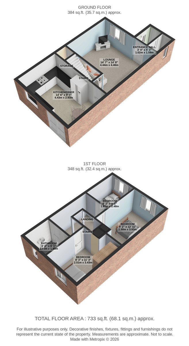 BEDROOM 8' 2" x 11' 3" (2.50m x 3.44m) Beautiful double bedroom with front facing double glazed window and a radiator.