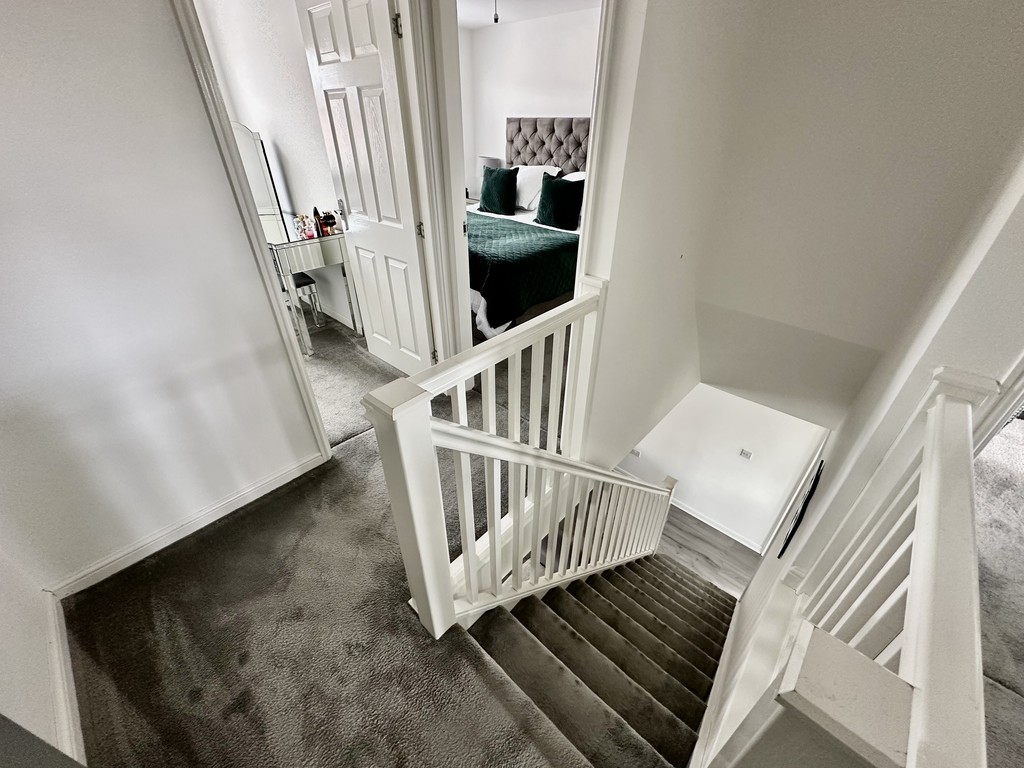 LANDING 6' 1" x 9' 7" (1.86m x 2.93m) Providing access to the bedrooms/bathroom, loft access point with drop down ladder and the loft is partially boarded for storage.