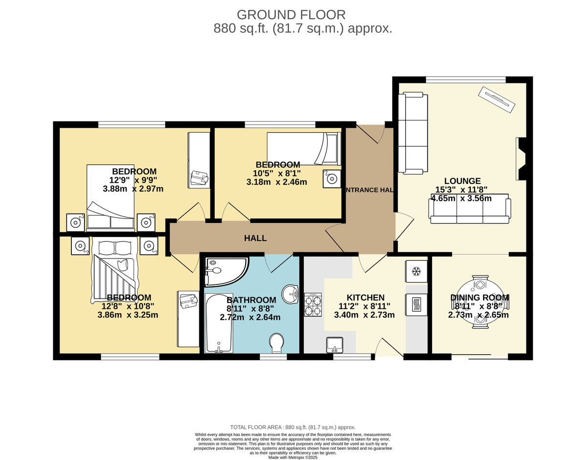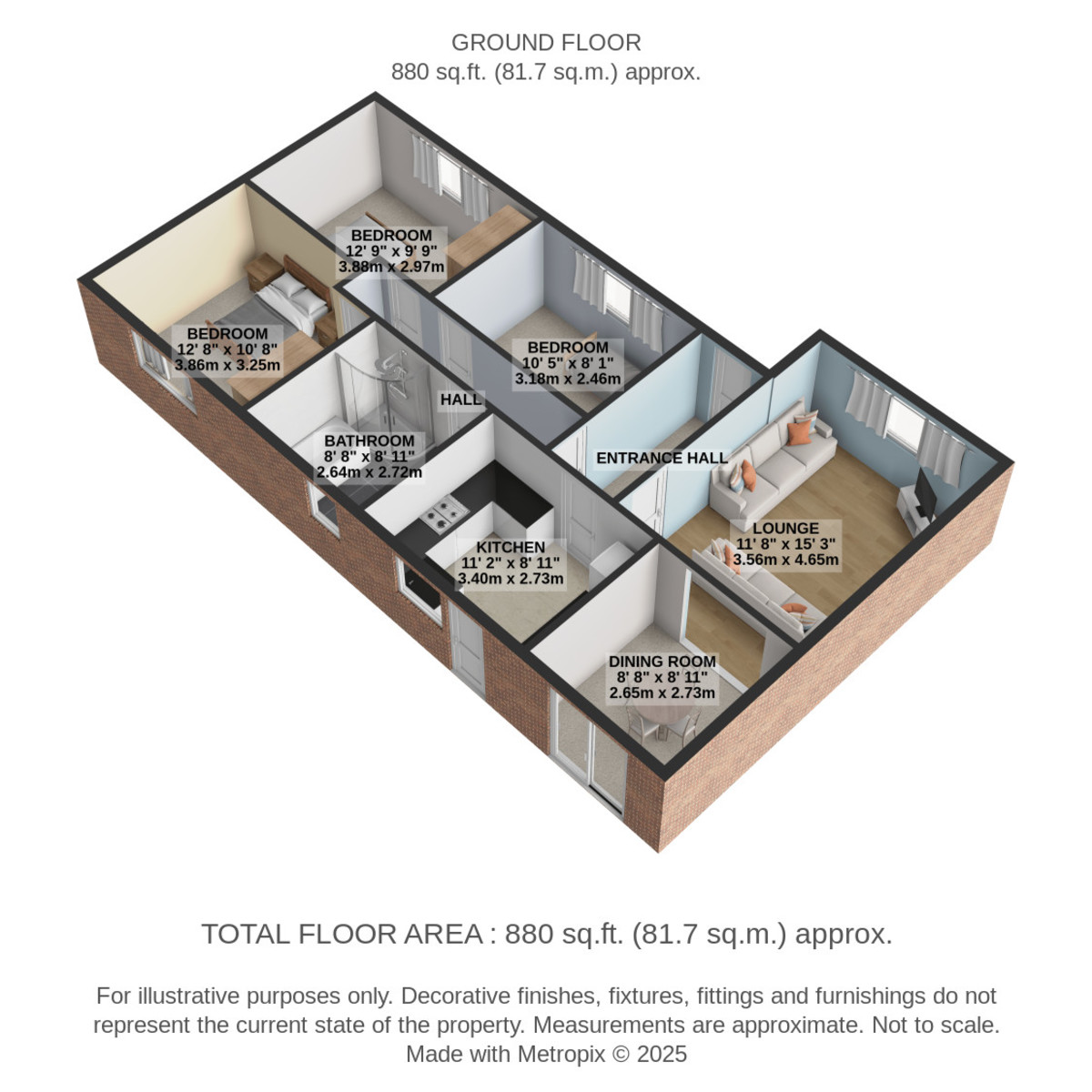 BEDROOM 10' 5" x 8' 0" (3.18m x 2.46m) The third bedroom is also spacious with front facing double glazed window, radiator, coving and laminate flooring.