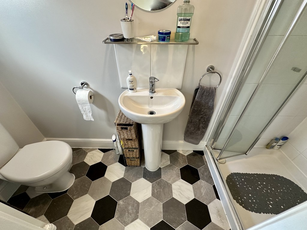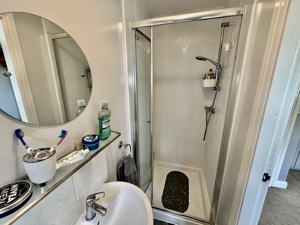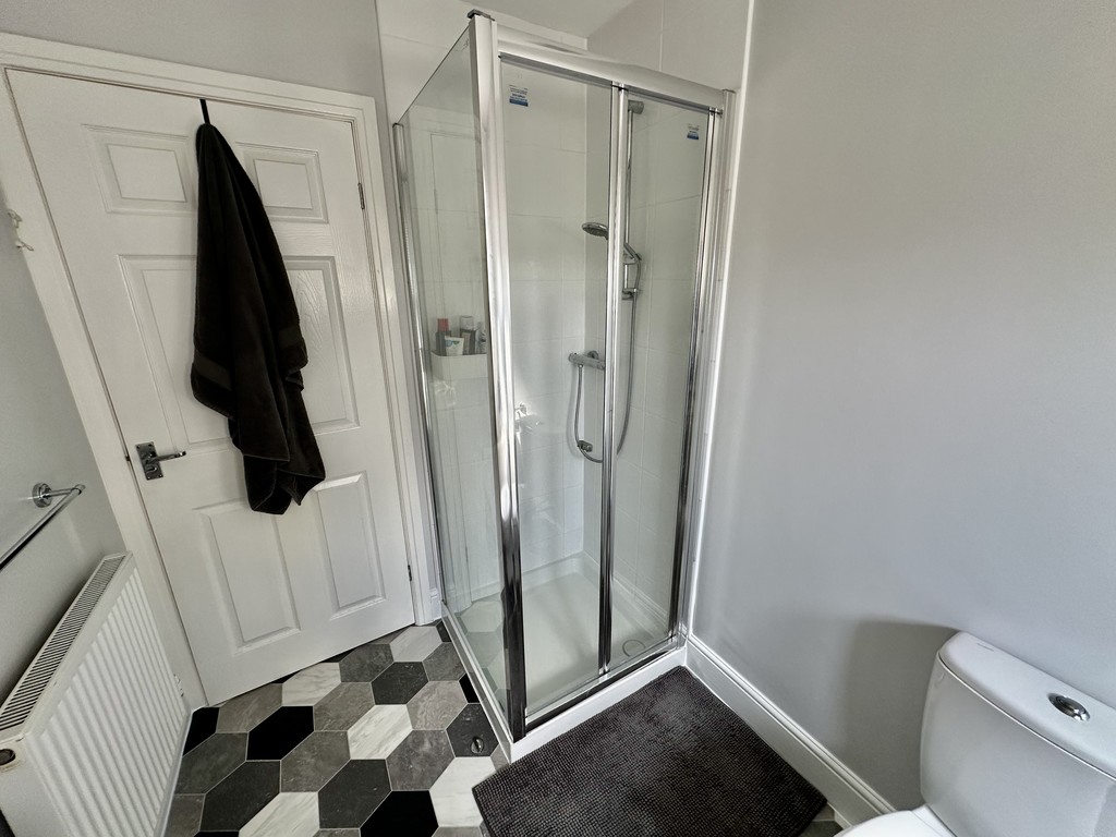 ENSUITE 2' 11" x 9' 3" (0.89m x 2.84m) Beautiful shower room with shower cubicle, low flush WC, wash hand basin, tiled splash backs, radiator, extractor fan and rear facing double glazed frosted window.