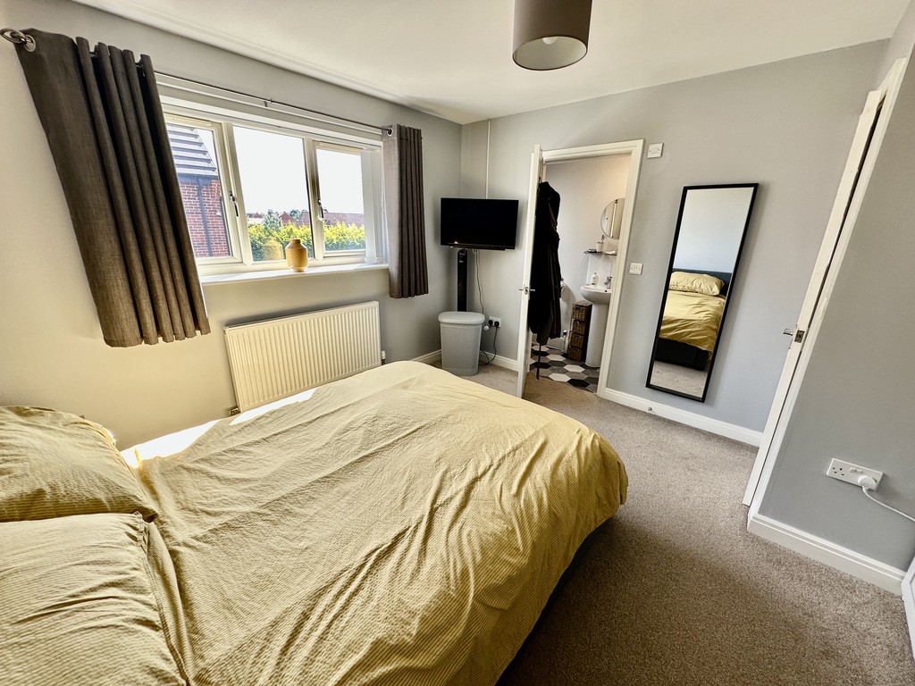 BEDROOM 11' 7" x 12' 7" (3.55m max x 3.86m max) L-shaped bedroom with rear facing double glazed window, door to the en-suite shower room and a radiator.