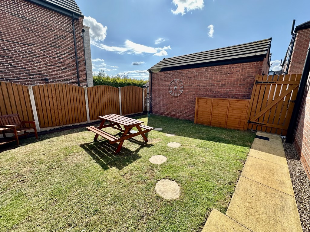 FRONT GARDEN/DRIVEWAY/GARAGE With open access to the driveway providing off street parking for at least three cars, small front lawned garden and side access to the rear garden via a gate. Detached garage is at the end of the driveway and accessed via an up and over door.