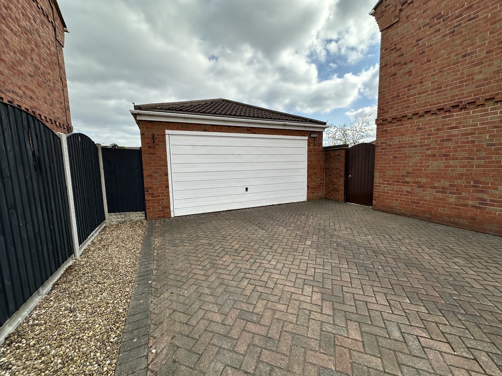 DOUBLE GARAGE Double garage with up and over door, side facing single glazed window and further side door to the rear garden.