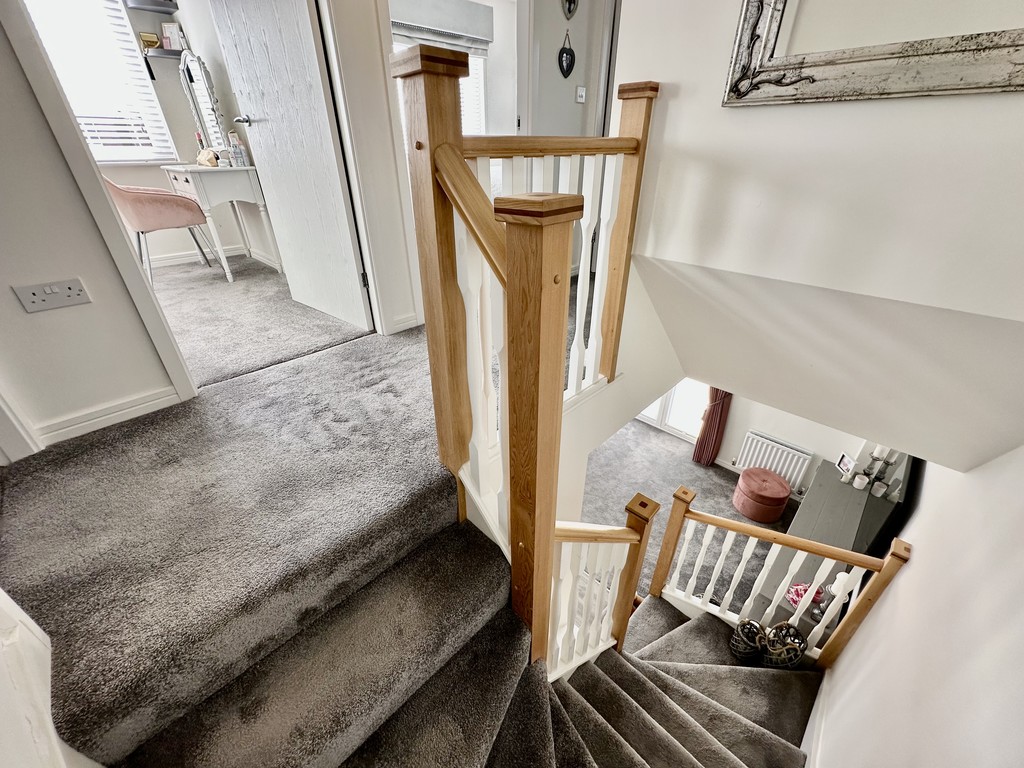 LANDING 9' 9" x 7' 7" (2.99m x 2.33m) Providing access to all bedrooms/bathroom, storage cupboard above the stairs, loft access point and a drop down ladder to the partially boarded loft space for storage.