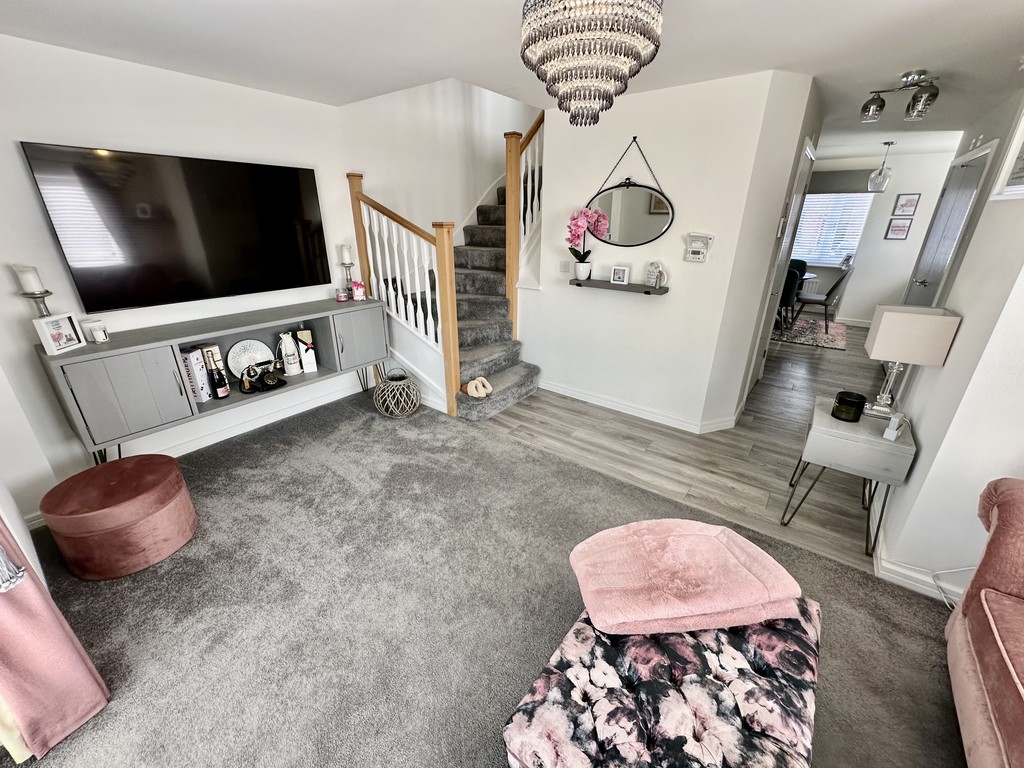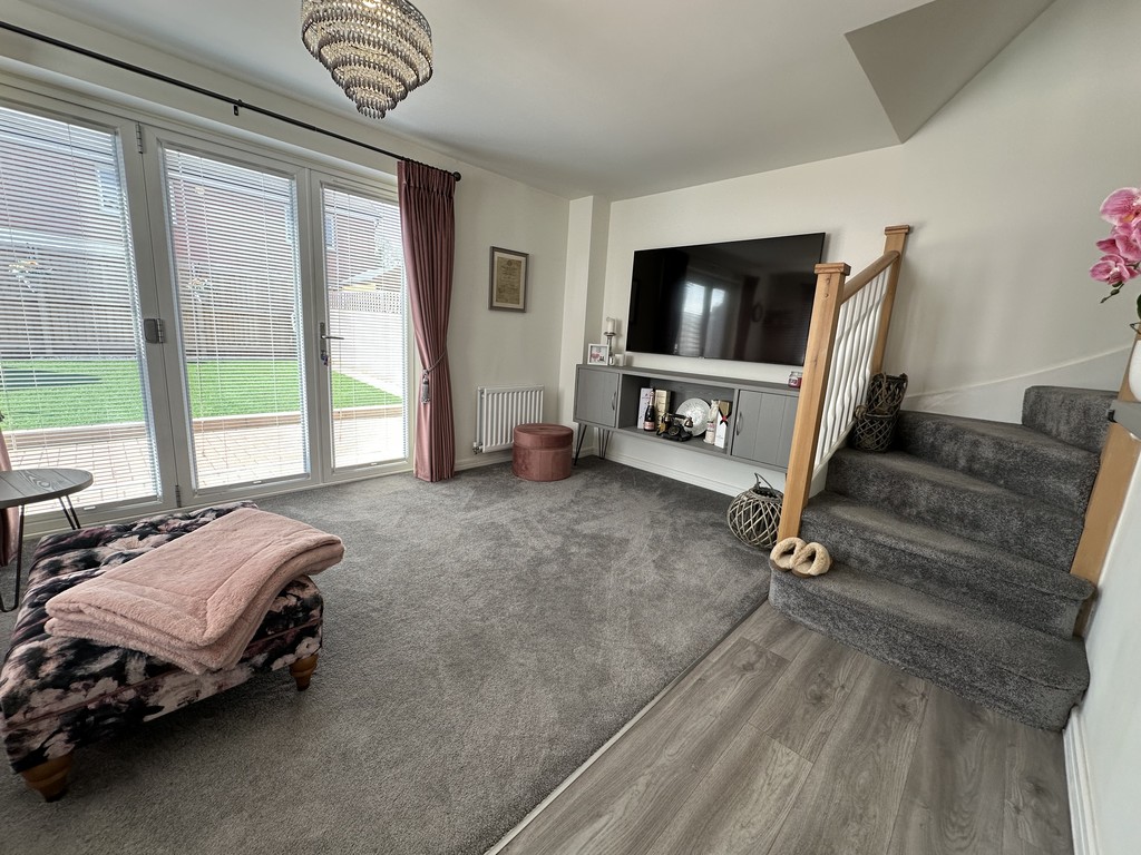 LOUNGE 11' 1" x 16' 4" (3.39m x 5.00m) Beautiful living space with side facing double glazed bi-folding doors to the delightful garden, front facing double glazed window, open access to the entrance hallway, two radiators and stairs lead to the first floor landing.