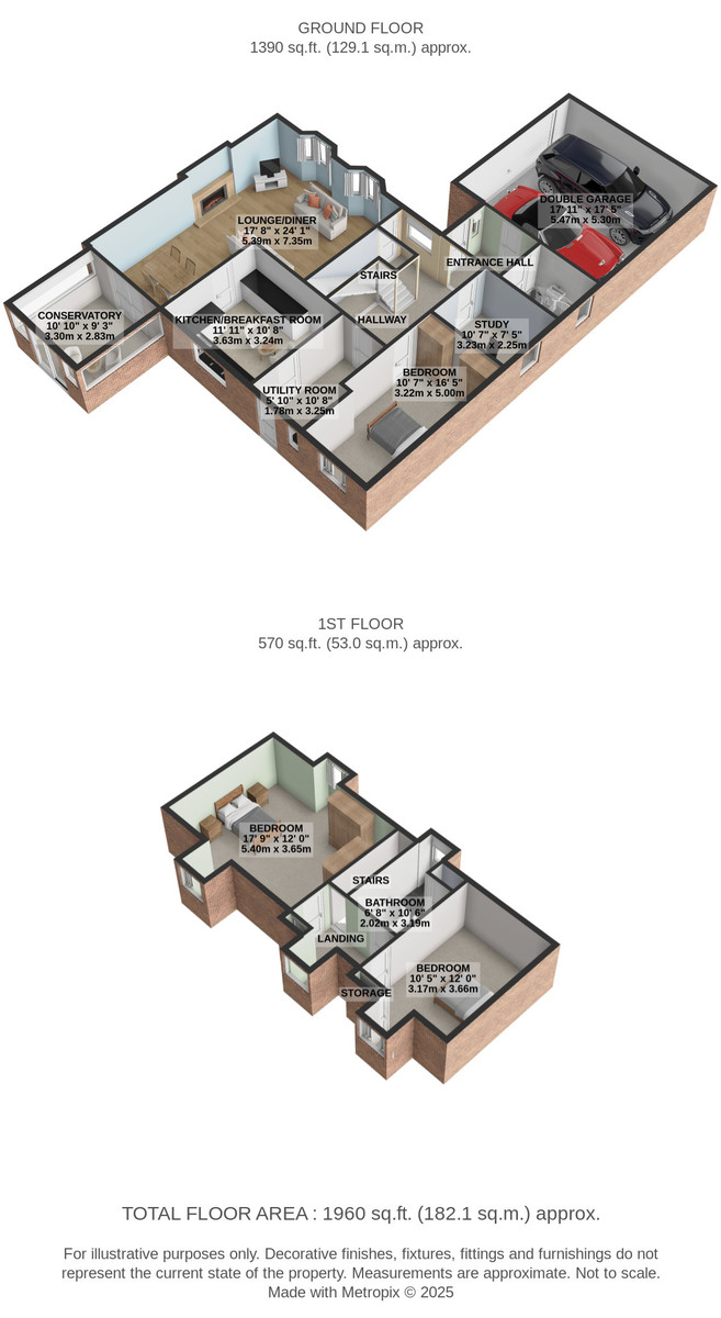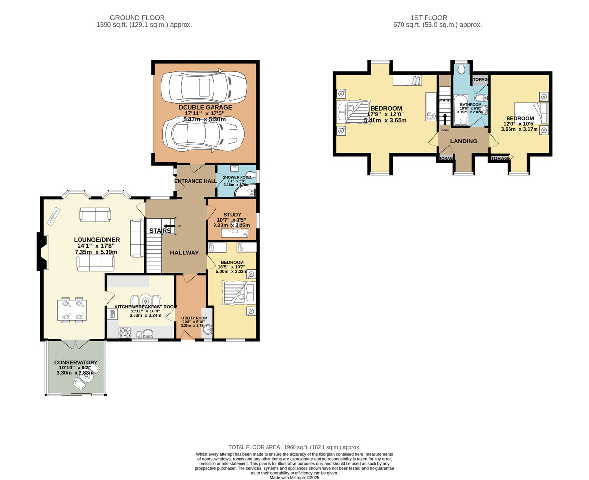 DOUBLE GARAGE 17' 11" x 17' 4" (5.47m x 5.30m) Side facing electric garage door, internal door to the hallway and benefits from power points plus lighting.