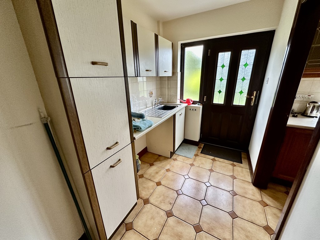 UTILITY ROOM 5' 10" x 10' 7" (1.78m x 3.25m) Additional utility space with fitted storage cabinets, work surface incorporating a single bowl sink, plumbing for a washing machine, radiator, tiled flooring, rear facing double glazed window, rear facing double glazed frosted door to the garden and door to the hallway.