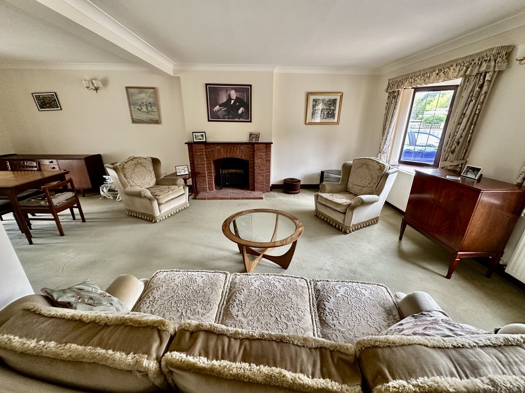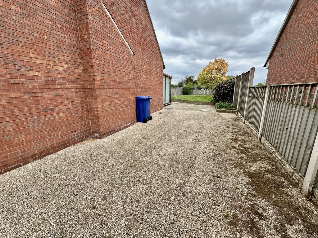 FRONT GARDEN & DRIVEWAY Open access to the large driveway providing off street parking for several cars in front of the property, small lawned garden that wraps round the side, mature tree to the front, bushes and side access to the rear garden from both sides.