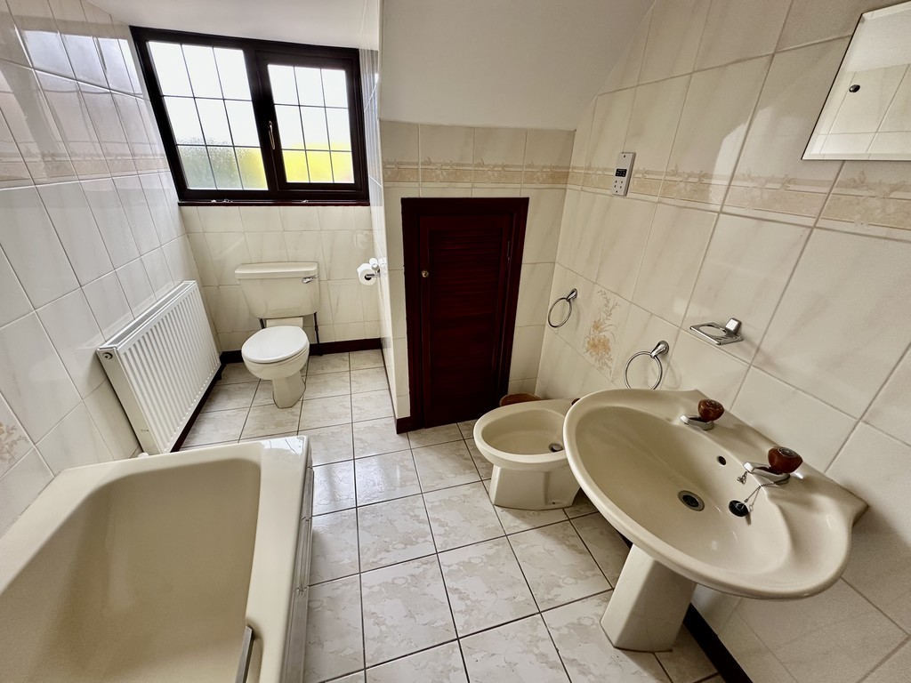 BATHROOM 6' 7" x 10' 5" (2.02m x 3.19m) The bathroom comprises of bath, wash hand basin, bidet, low flush WC, radiator, tiled walls, tiled flooring, shaving point and front facing double glazed frosted window.