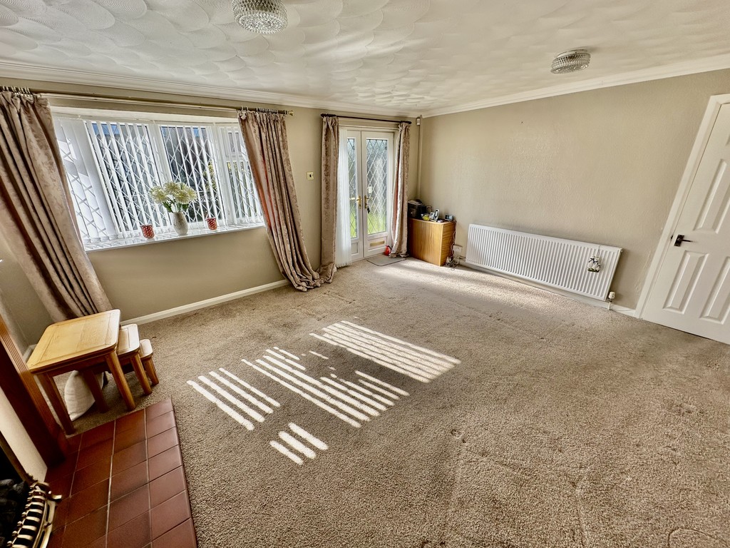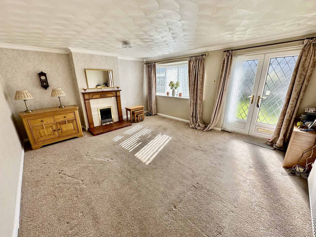 LOUNGE 16' 6" x 13' 9" (5.05m x 4.21m) Beautiful reception room with front facing double glazed French doors, front facing double glazed bow window, radiator, coving, coal effect gas fire with decorative surround and feature internal window.