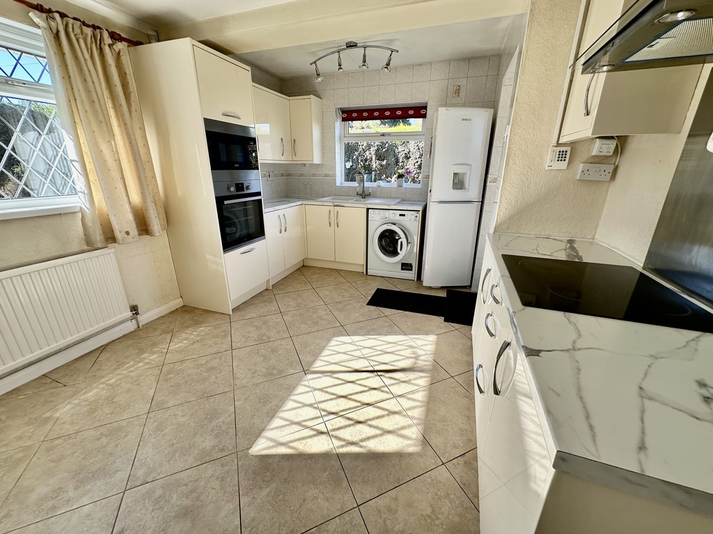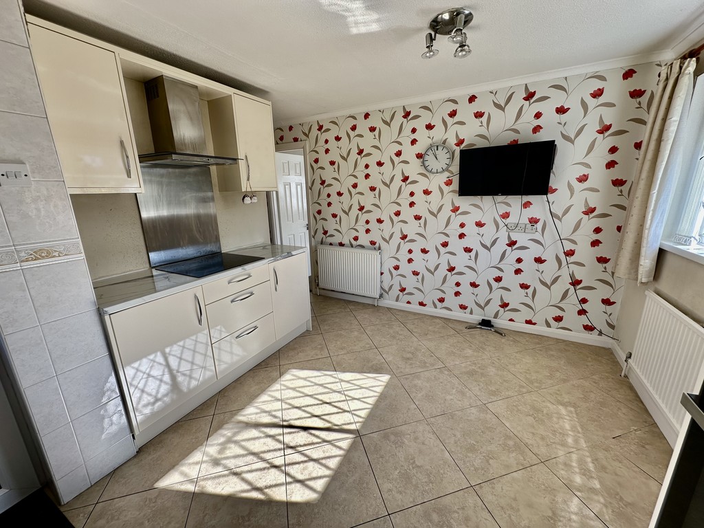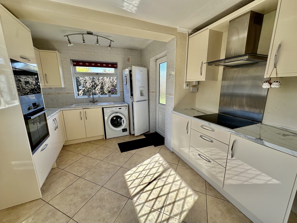 KITCHEN/DINER 10' 7" x 14' 3" (3.24m x 4.36m) Nicely presented kitchen/diner with a range of fitted cabinetry at both eye and base level, work surfaces incorporating a single and half bowl sink with drainer, four ring electric hob, extractor hood above, single electric oven, integrated microwave, partially tiled walls, tiled flooring, radiator, coving, front/side facing double glazed windows and rear facing double glazed frosted door to the garden.