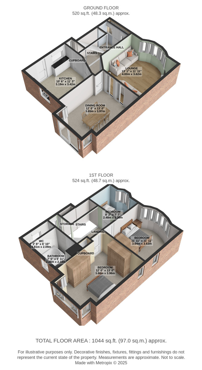 BEDROOM 12' 0" x 12' 11" (3.66m x 3.96m) Further double bedroom with rear facing double glazed bay window, two radiators and side facing double glazed window.