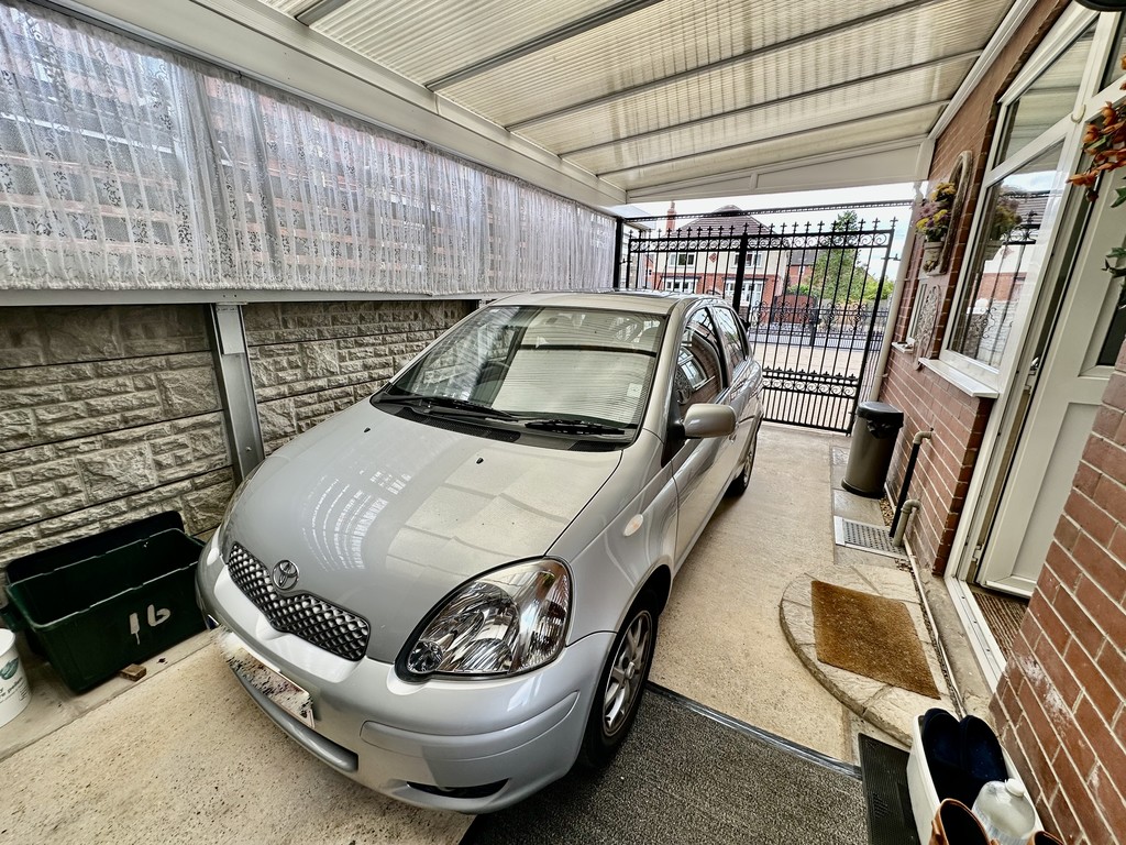 FRONT GARDEN/DRIVEWAY Lawned front garden with wall enclosure, double gates to the front lead to the driveway providing off street parking and further double gates lead to the car port at the side.