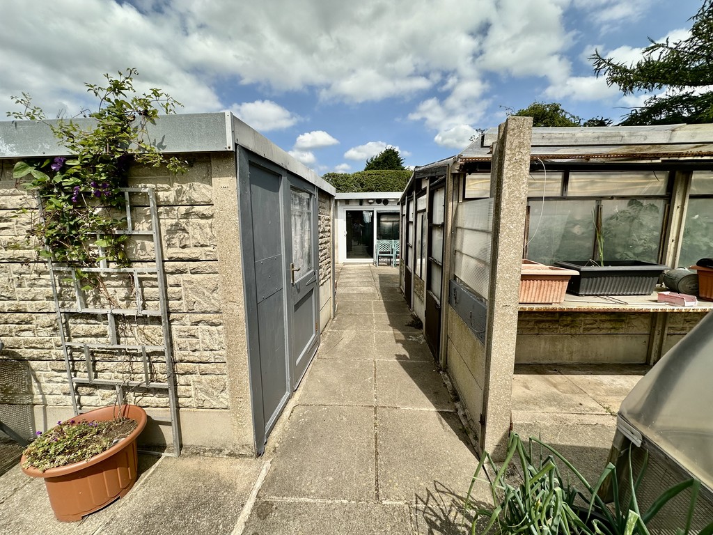 REAR GARDEN & OUTBUILDINGS Side facing double glazed door provides access to the rear garden, which is mainly laid to lawn over three tiers, surrounding, flower/shrub beds, large rear garden shed with two rooms, additional greenhouses/shed and all are fence enclosed.
