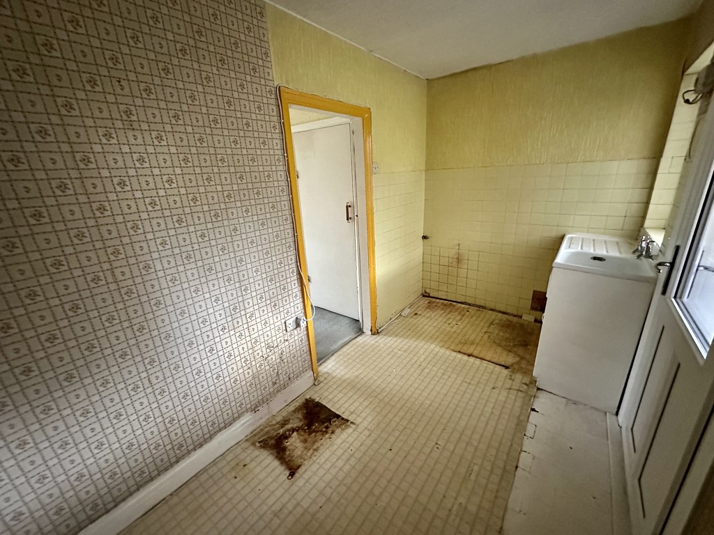 KITCHEN 6' 0" x 13' 10" (1.85m x 4.22m) The kitchen is in need of renovation and currently benefits from two rear facing double glazed windows, rear facing double glazed door to the conservatory, some fitted kitchen units at both eye and base level, work surface incorporating a single bowl sink with drainer and space for a fridge/freezer.