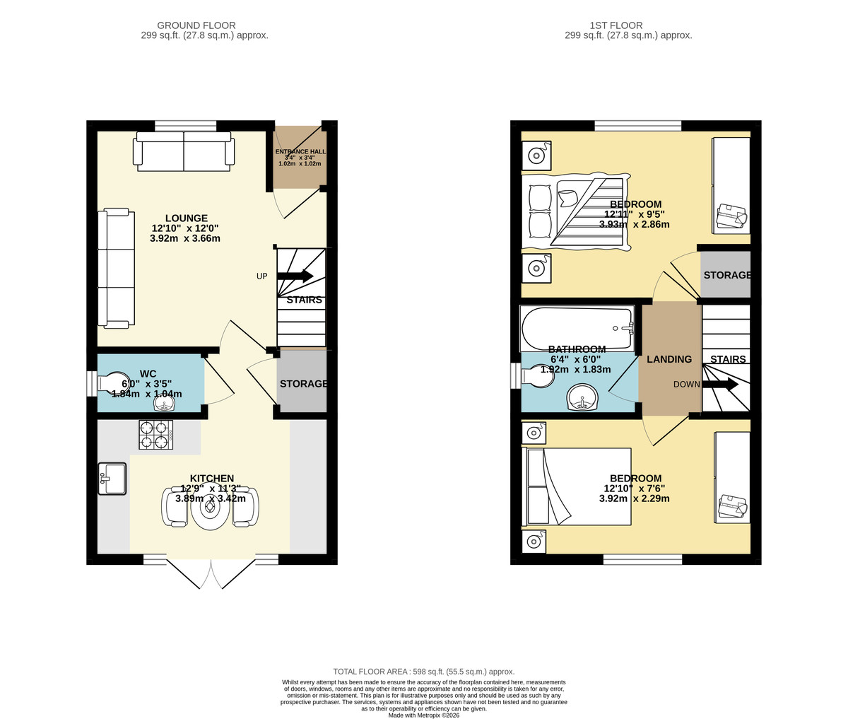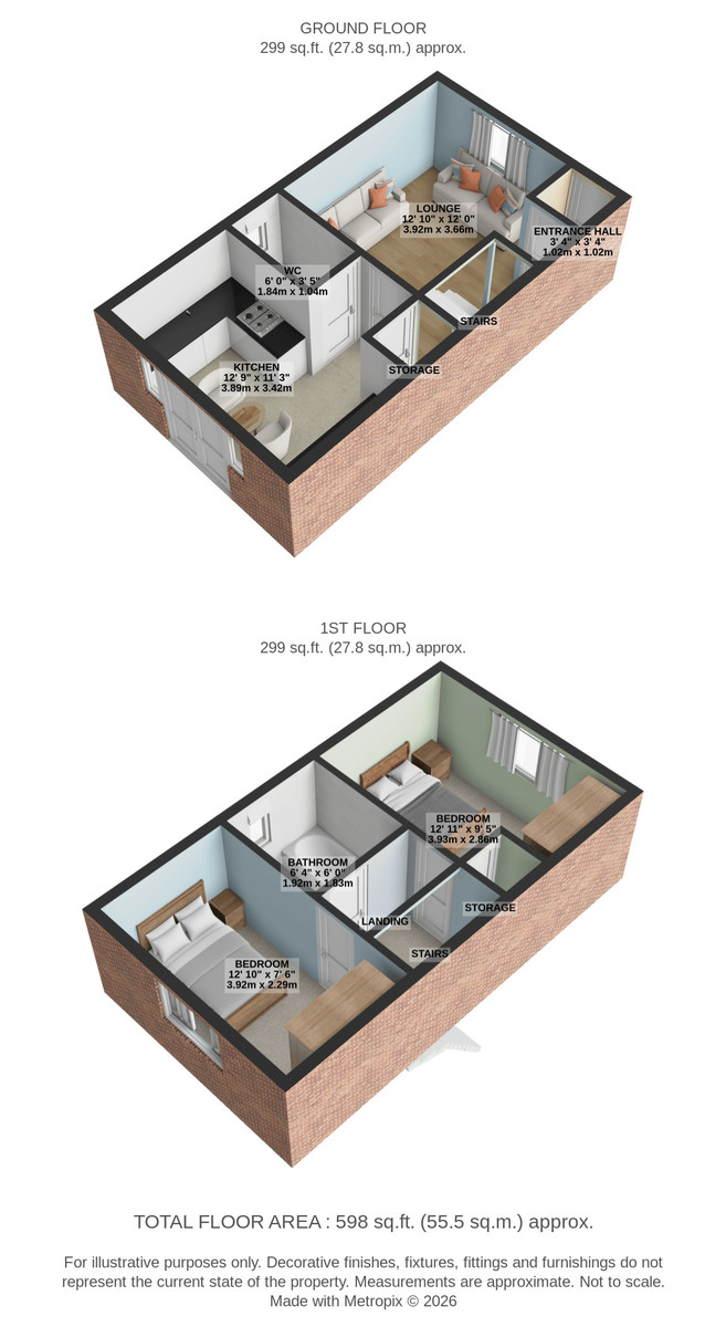 BEDROOM 12' 10" x 9' 4" (3.93m max x 2.86m) Lovely double bedroom with storage cupboard, front facing double glazed window and a radiator.