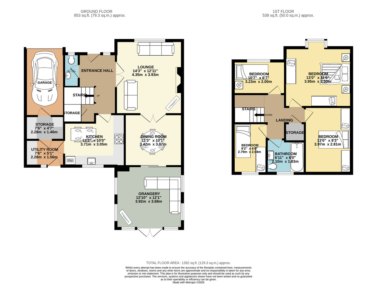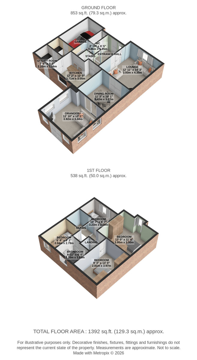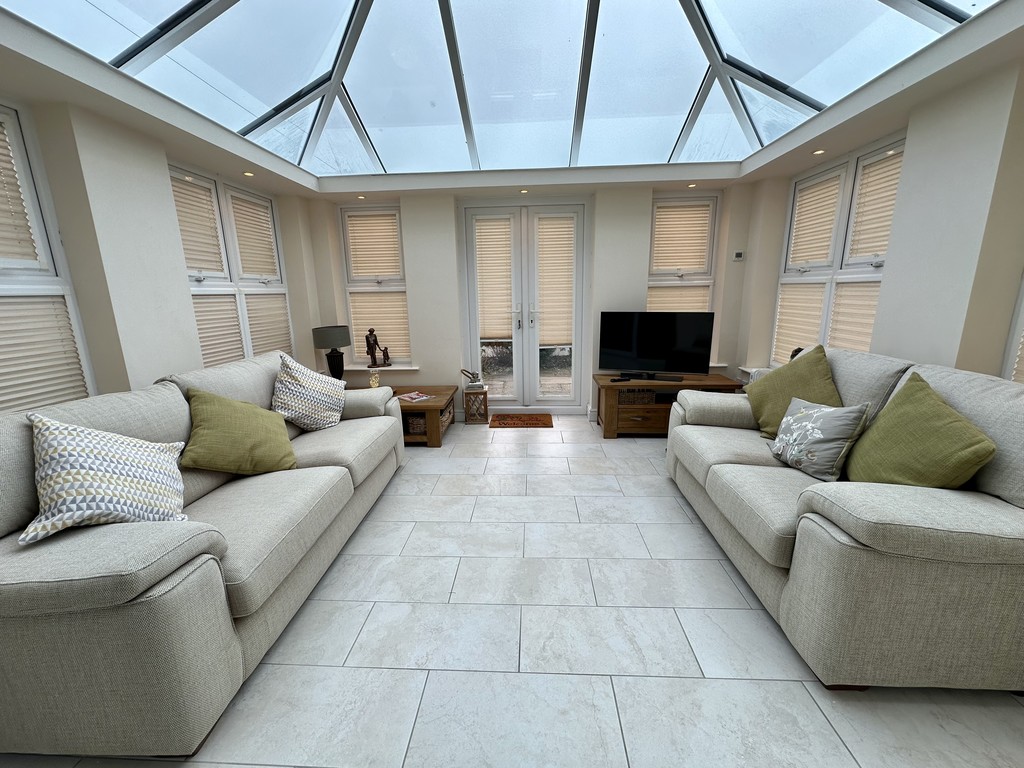 ORANGERY 12' 10" x 12' 0" (3.92m x 3.68m) Fantastic additional living space overlooking the rear garden with side/rear facing double glazed windows, rear facing double glazed French doors, tiled flooring, electric under floor heating, spotlights and two television points.