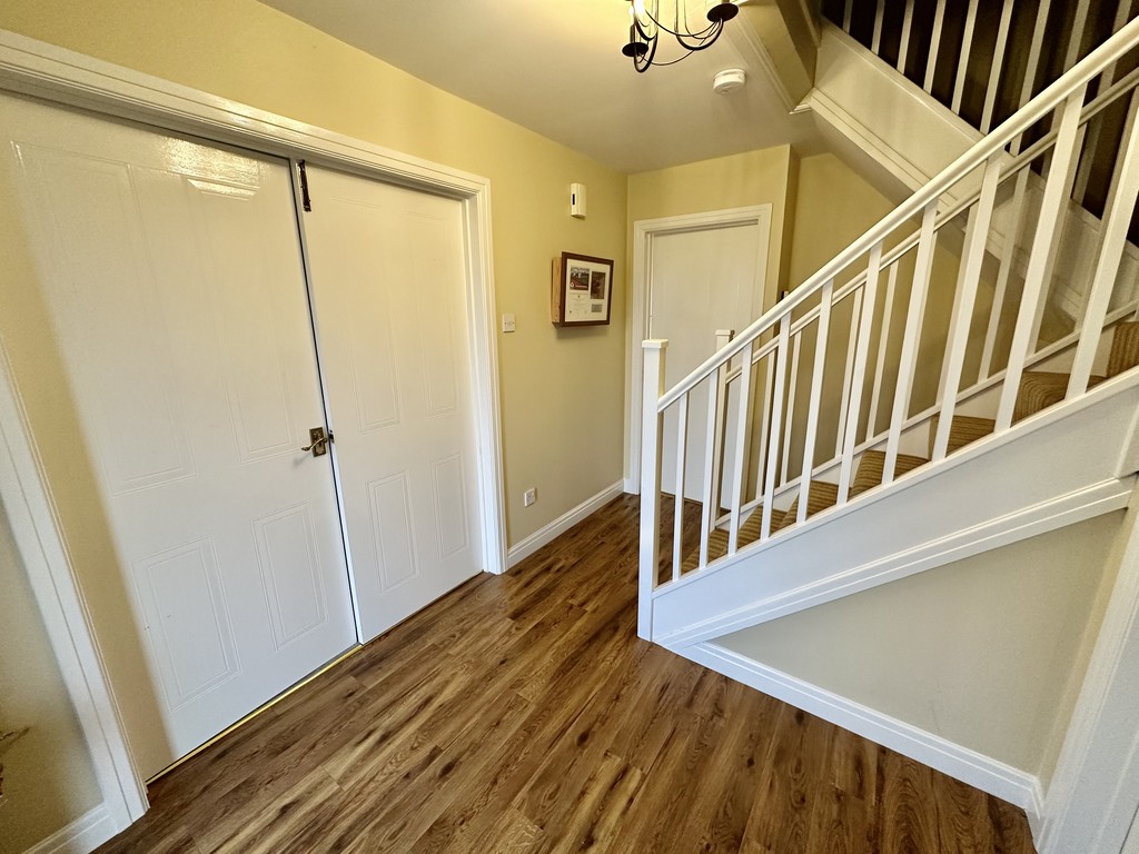 ENTRANCE HALL 7' 2" x 11' 8" (2.20m x 3.56m) This beautiful home is accessed via the front facing double glazed frosted composite door to the entrance hallway, front facing double glazed frosted window, radiator, Karndean flooring, radiator, door to the WC, double doors to the lounge, storage cupboard beneath the stairs leading to the first floor.