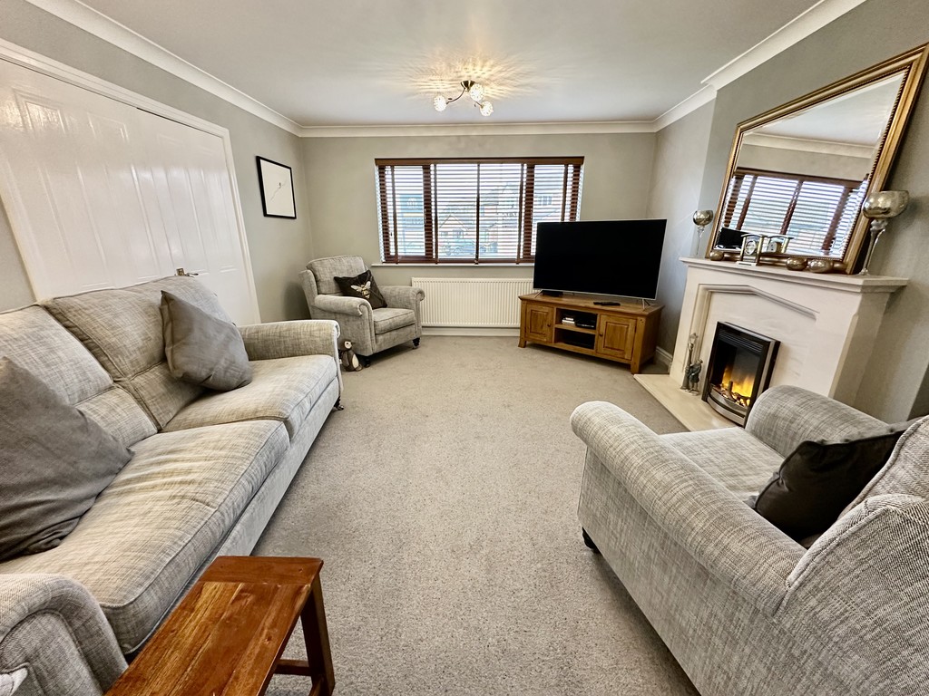 LOUNGE 12' 10" x 14' 3" (3.93m x 4.35m) Fantastic reception room with feature electric log effect fireplace, front facing double glazed window, radiator, coving, television point, telephone point and double doors to the dining room.