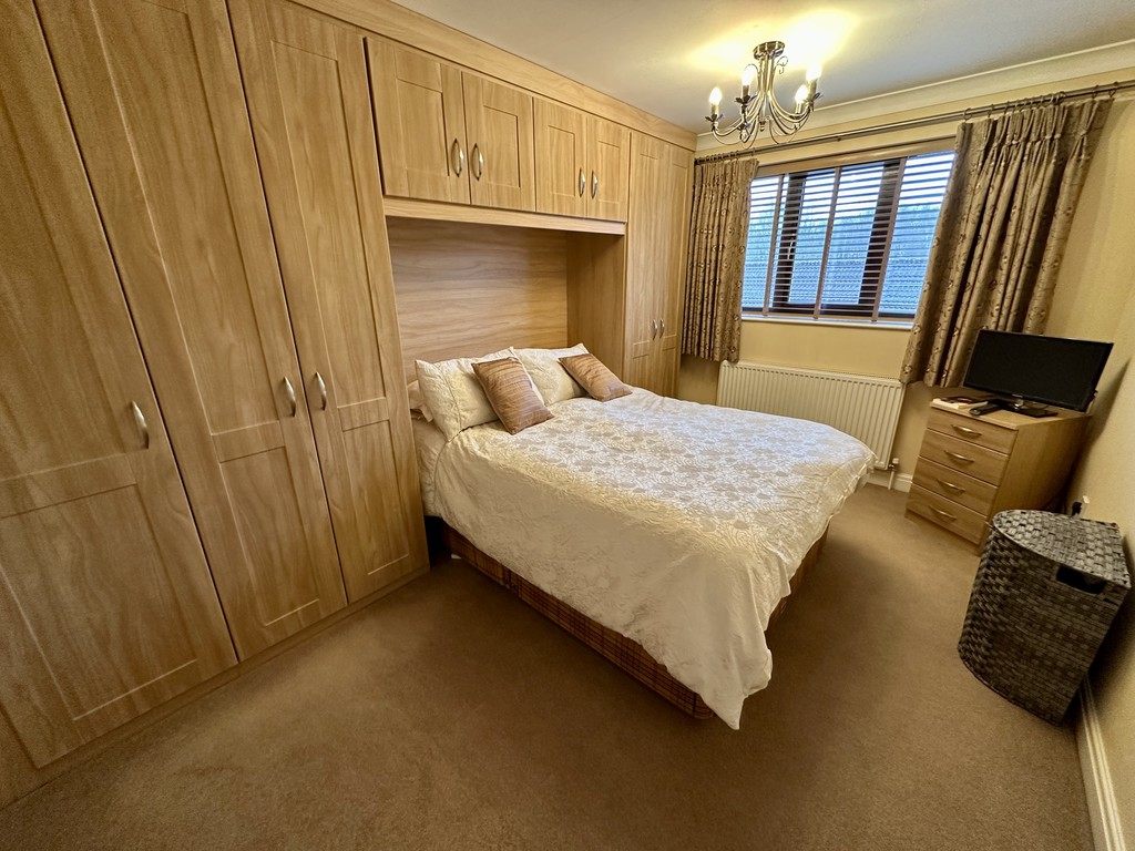 BEDROOM 9' 2" x 13' 0" (2.81m x 3.97m) Double bedroom with fitted wardrobes, over bed storage cupboards, coving, radiator, loft access point and rear facing double glazed window.