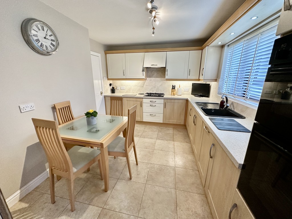 KITCHEN 12' 2" x 8' 11" (3.71m x 2.74m) Beautiful kitchen space with a range of fitted cabinetry at both eye and base level, work surfaces incorporating a single bowl sink with drainer unit, four ring gas hob with extractor fan above, partially tiled walls, under cabinet lighting, double electric oven, integrated slimline dishwasher, integrated fridge, integrated freezer, heated towel radiator, Karndean flooring, rear facing double glazed window and door to the utility room.