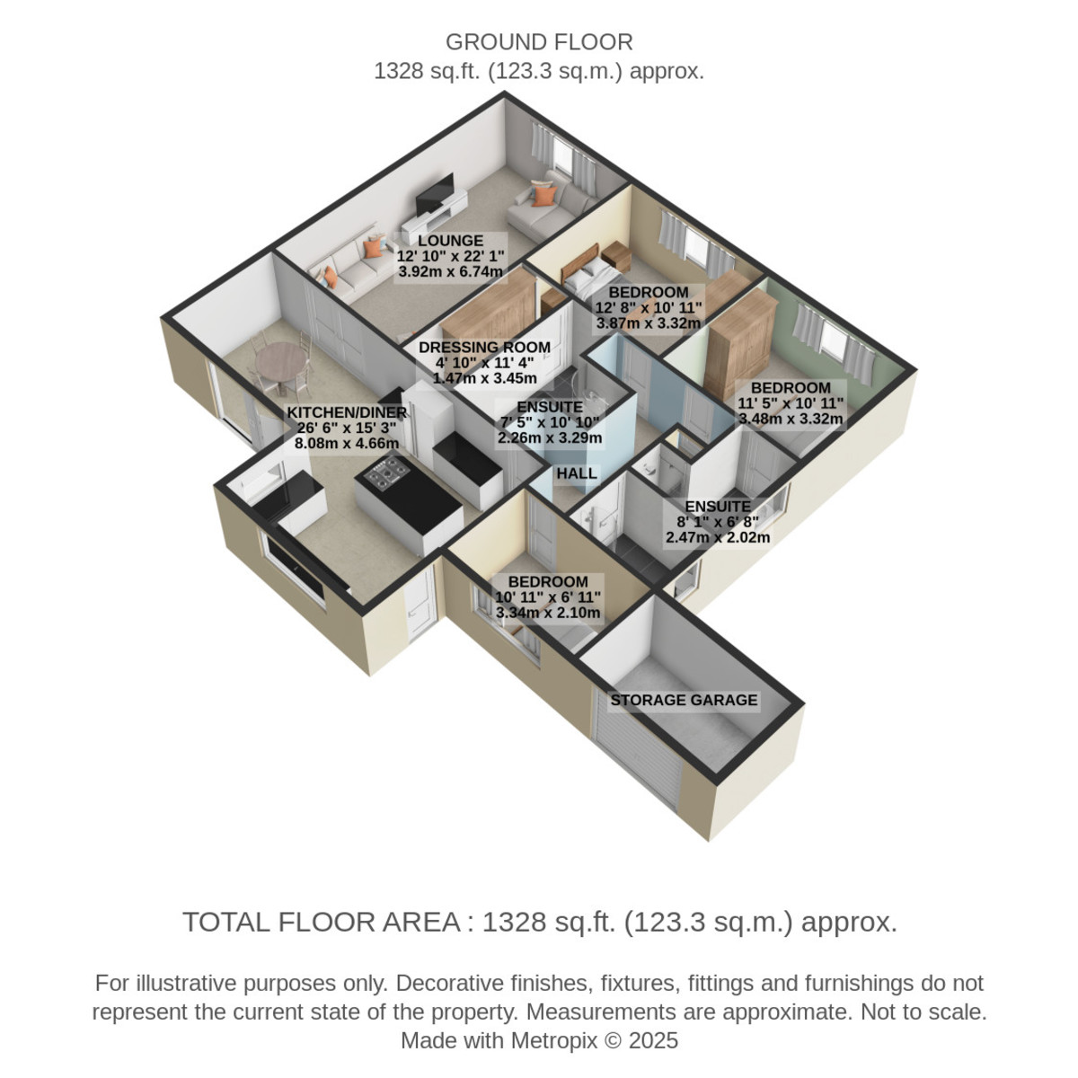DRESSING ROOM 4' 9" x 11' 3" (1.47m x 3.45m) Great dressing space with door to the en-suite shower room, coving and new carpets.