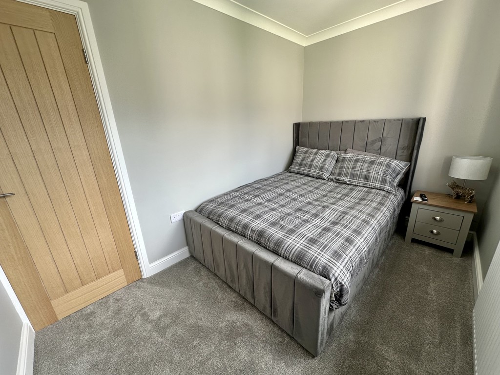 BEDROOM 11' 5" x 10' 10" (3.48m x 3.32m) Another spacious double bedroom with new carpets, door to the en-suite shower room, radiator, coving, new carpets and half wood panelled feature wall.
