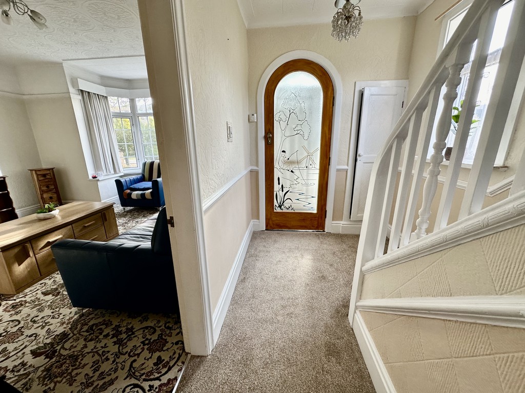 ENTRANCE HALL 6' 0" x 13' 7" (1.83m x 4.15m) Generous hallway with feature stained glass door from the porch, side facing double glazed window, coving to the ceiling, stairs to the first floor, dado rail, radiator, telephone point and storage cupboard beneath the stairs.