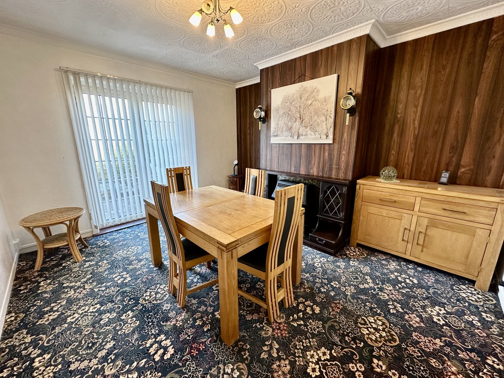 DINING ROOM 11' 7" x 13' 3" (3.55m x 4.04m) Second reception room located at the rear of the house currently utilised as the dining room with rear facing double glazed French doors to the garden, wood panelled walls, feature gas fire with decorative surround and coving to the ceiling.