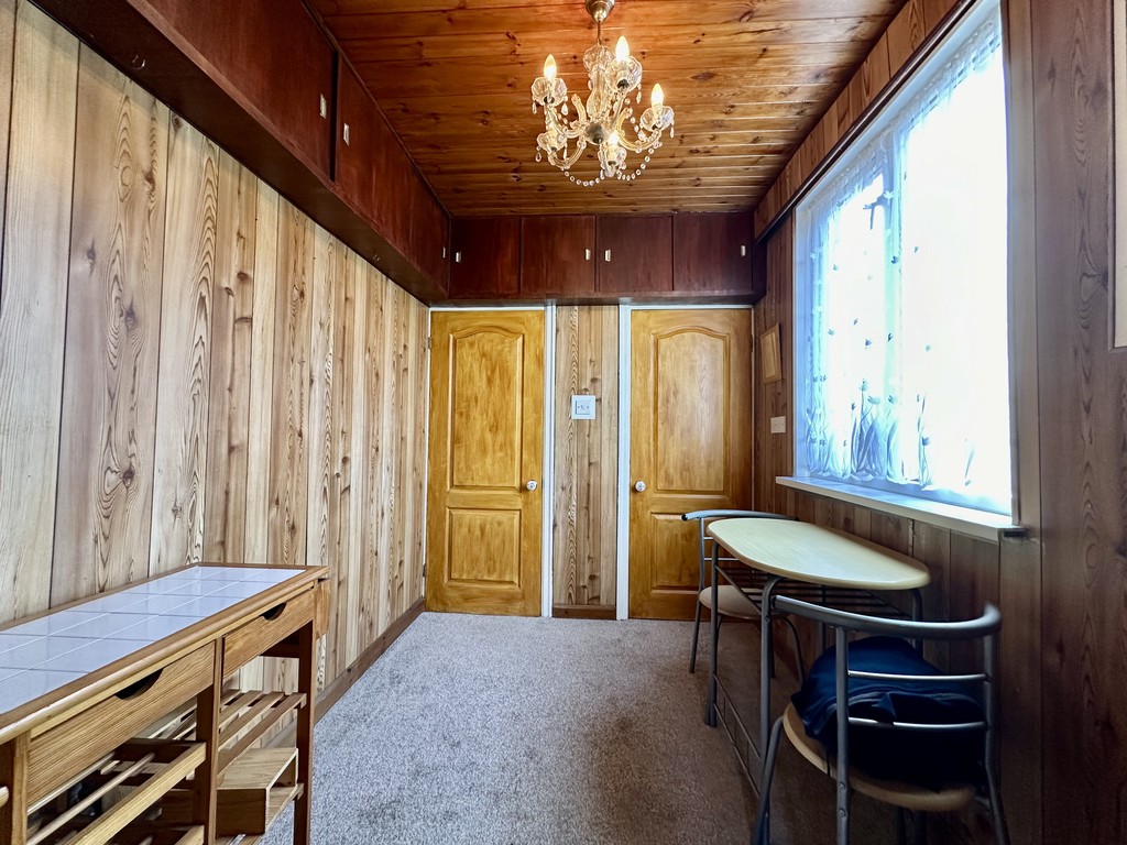 BREAKFAST ROOM 8' 7" x 6' 10" (2.63m x 2.09m) Versatile space with open access to the kitchen but lends itself to being a breakfast area with side facing double glazed window, storage cupboard beneath the stairs, step down to the kitchen, wood panelled walls and ceiling.