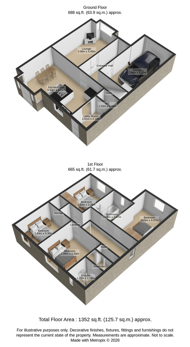 INTEGRAL SINGLE GARAGE 9' 9" x 17' 2" (2.98m x 5.25m) The garage currently holds the wall mounted boiler unit, space for a fridge/freezer, power points, lighting and front up and over door.