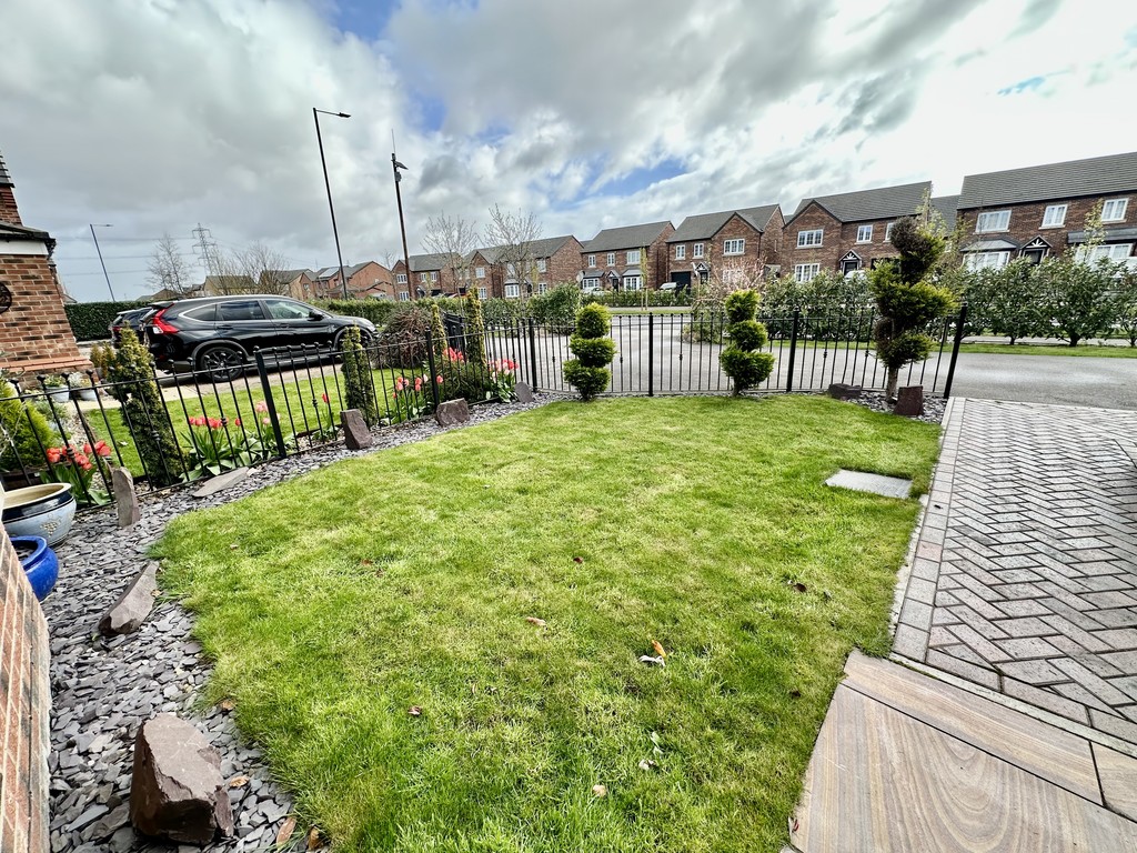 DRIVEWAY & FRONT GARDEN Shared access to the off street parking area in front of the house on the driveway leading to the integral garage, railings partially enclose the front lawned garden with decorative bushes surrounding the lawn and there is side access to the rear garden.