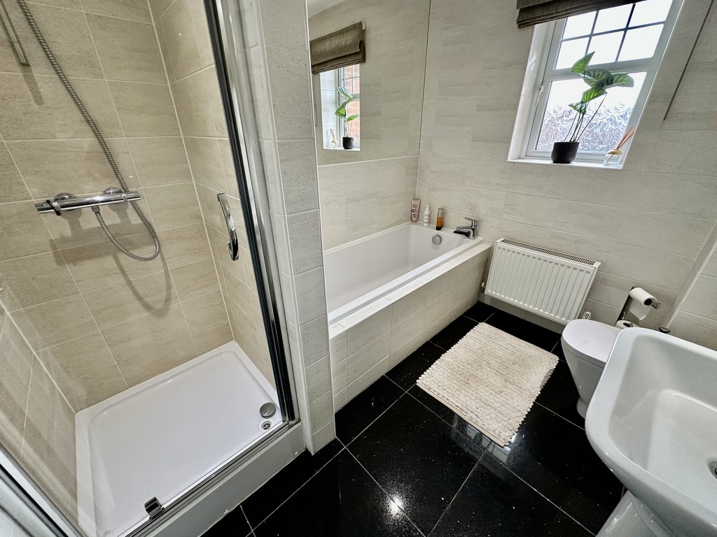 BATHROOM 6' 9" x 8' 5" (2.08m x 2.57m) Fantastic bathroom with separate shower cubicle, bath, low flush WC, wash hand basin, radiator, extractor fan, spotlights and front facing double glazed frosted window.