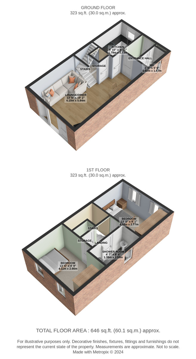 LANDING 2' 11" x 6' 7" (0.90m x 2.03m) Providing access to both bedrooms/shower room, storage cupboard, radiator, loft access point with drop down ladder and the loft space is partially boarded.