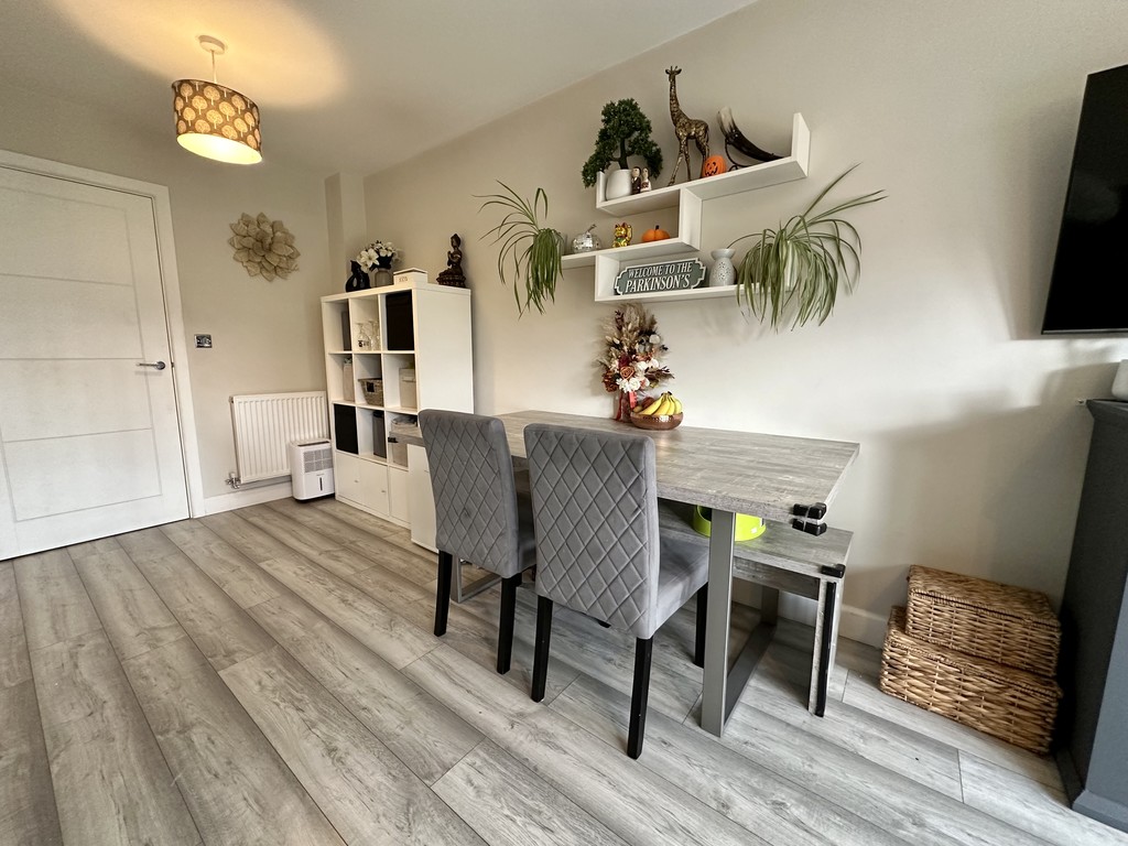 ENTRANCE HALL 3' 9" x 6' 3" (1.15m x 1.91m) This superb home is accessed via the front facing double glazed frosted door to the entrance hallway, door to the WC, door to the living room, radiator, laminate flooring, spotlight and alarm system.