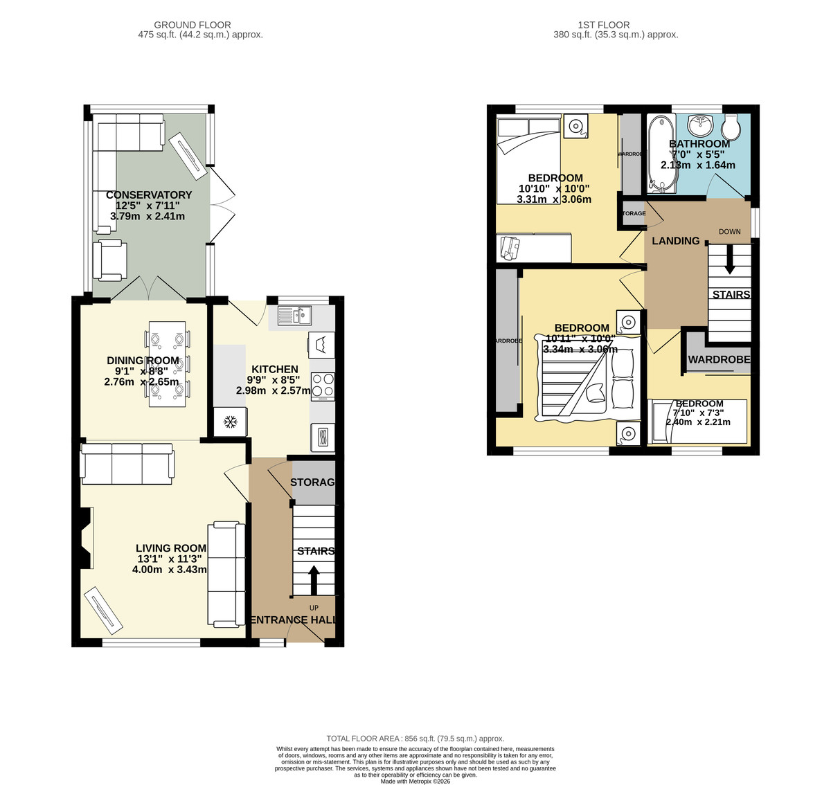 BEDROOM 10' 0" x 10' 11" (3.06m x 3.34m) Fabulous double bedroom with fitted sliding wardrobes, radiator, front facing double glazed window and coving.