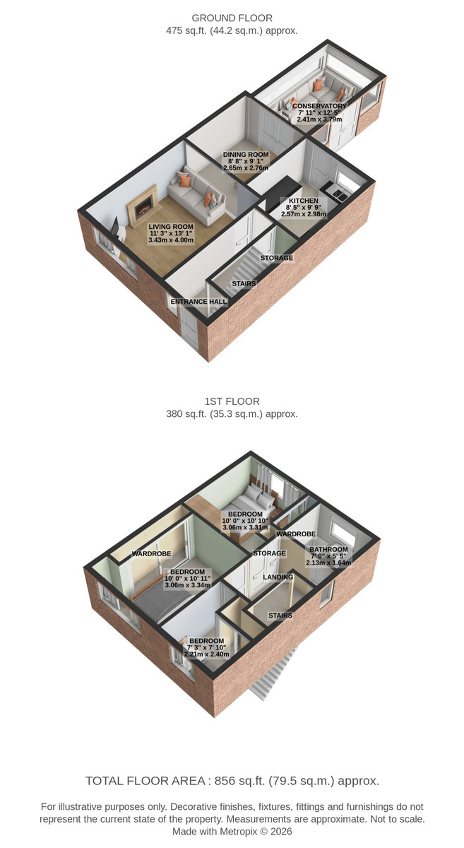 BEDROOM 10' 0" x 10' 10" (3.06m max x 3.31m) Further double bedroom at the rear of the house with fitted sliding wardrobes, radiator, rear facing double glazed window and coving to the ceiling.