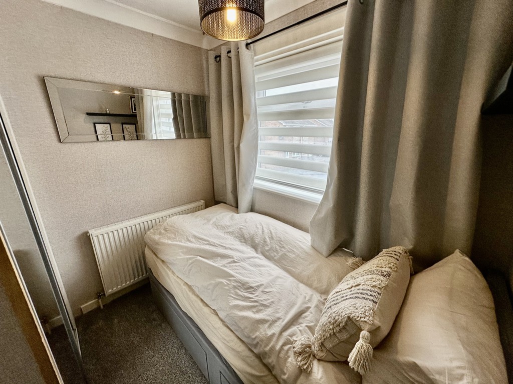 BEDROOM 7' 3" x 7' 10" (2.21m x 2.40m) Third bedroom is a single room but also benefits from fitted sliding wardrobes, radiator, coving and front facing double glazed window.