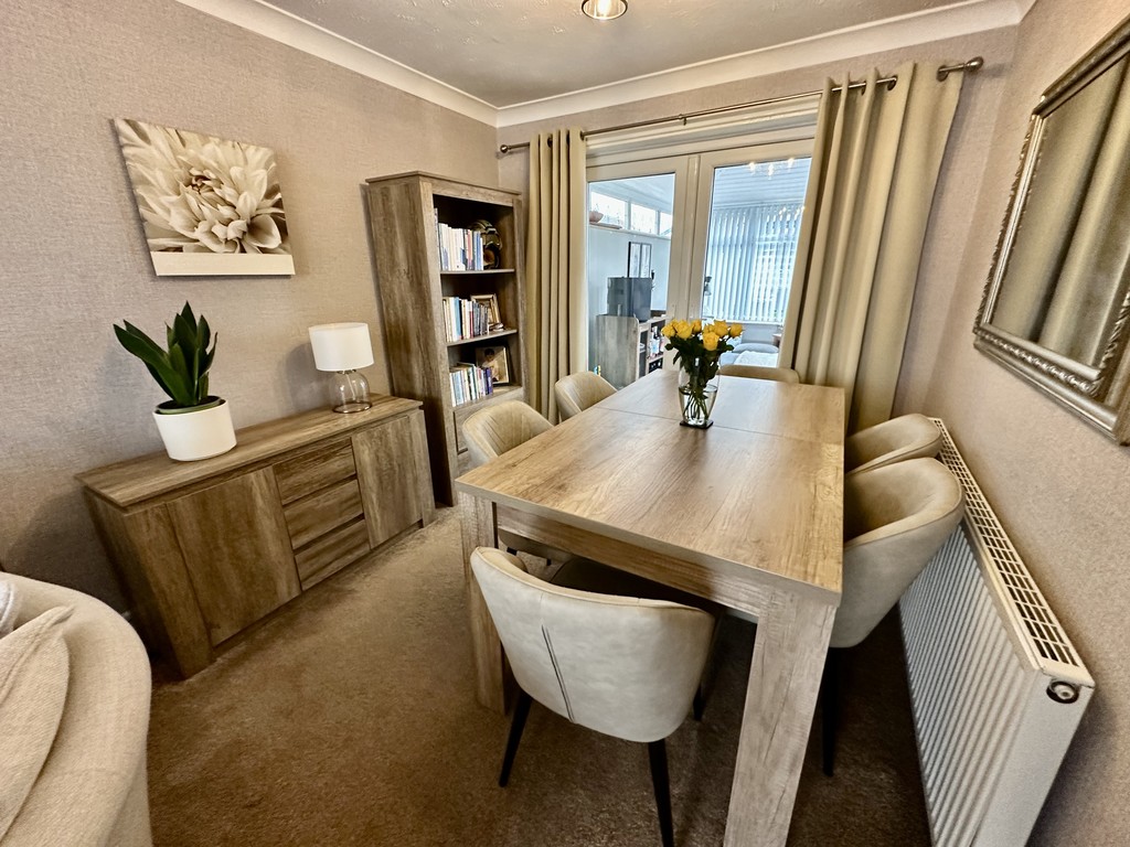 LOUNGE/DINER 11' 3" x 22' 0" (3.43m maxx 6.73m max) L-shaped reception room perfect for family living/dining with front facing double glazed window, pebble effect electric feature fireplace, coving, radiator and rear facing double glazed French doors to the conservatory.