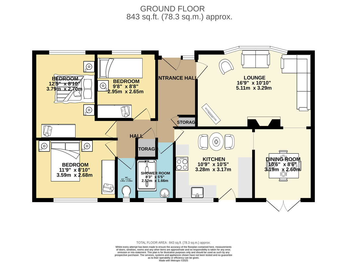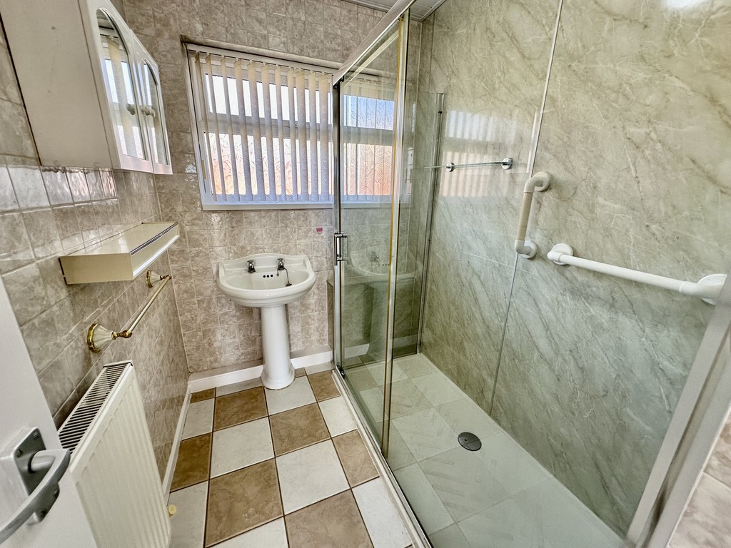 SHOWER ROOM 5' 5" x 7' 7" (1.66m x 2.32m) Nicely presented shower room with shower cubicle, shower unit, wash hand basin, radiator, tiled flooring, tiled walls partially, mirrored cabinet and rear facing double glazed frosted window.